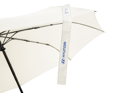 Логотип Hyundai: куполоподібна наклейка на ручці парасольки; Логотип у вигляді прапорця на рукаві; Друк на застібці